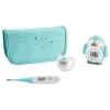 Es un set compuesto por tres termómetros (termómetro con punta flexible, termómetro chupete y termómetro para el baño) que ayuda a los papás a controlar cómodamente la temperatura de sus bebés y la del agua del baño. Es ideal para las familias que buscan una solución completa y sencilla para la medición de la temperatura.