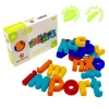 Set de alfabeto en minúsculas. Set contiene todas las letras del alfabeto, cada una con medidas aproximadas 7 x1,5 x 8,5 cm. Todas fabricadas en goma blanda y con textura exterior soft aterciopelada. Presentación en caja de cartón medidas 25 x 5 x 18,7 cm.