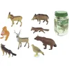 Set de 8 animales del bosque compuesto por: 1 oso pardo, 1 ciervo, 1 jabalí, 1 carnero, 1 águila real, 1 lobo, 1 zorro, 1 ardilla, 1 guía didáctica Y 1 pote de almacenamiento, material plástico resitente. Desarrolla la motivación y el aprendizaje del mundo animal, habilidades motoras finas, imaginación y exploración.
