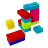 Bloques de construcción blandos y con textura soft aterciopelada, encajables. Set contiene 20 piezas. Medidas entre 11 x 3 x 5 cm. y 5 x 3x 5 cm. Presentación en caja de cartón medidas 28 x 6,5 x 17 cm.