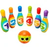 ÚLTIMAS UNIDADESJuego bowling con números compuesto por 6 piezas con medidas 19 x 6 cm y una pelota de goma blanda con medidas 10 cm, diferentes colores. Desarrolla las habilidades sensoriales, imaginación y motricidad.