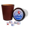 ÚLTIMAS UNIDADESCacho de cuero natural, incluye 5 dados blancos con puntas redondeadas, 16 mm. Para uso didáctico en aplicación matemática y juegos de azar.