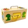 ÚLTIMAS UNIDADESCaja de madera con 9 tipos de cerraduras, medidas 30 x 14 x 11,5 cm. Posee diferentes tipos de niveles de dificultad. Desarrolla motricidad fina y curiosidad en los niños y niñas. Incluye una asa superior para transportarla. Presentación caja de cartón medidas 34 x 19 x 15,5 cm.