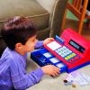 ÚLTIMAS UNIDADESCaja registradora 73 piezas de plástico resistente con medidas 27 x 24 x14 cm. con botones grandes en el teclado, fáciles de presionar. Incluye una calculadora solar integrada, 40 monedas de plástico, 30 billetes tamaño real, 1 tarjeta de crédito y guía de actividades. Fortalece el aprendizaje de la denominación monetaria, creatividad, juego de roles y estimula las habilidades matemática básicas.