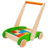 Carro de arrastre con ruedas de goma antideslizantes, material madera natural pintada compuesto por 20 cubos madera en diferentes colores con medidas entre 5 x 2,5 cm y 10 x 5 cm, y una bolsa con tornillos para armar la manilla de arrastre. Carro mide 36 x 11 x 27 cm. Desarrolla motricidad, creatividad, imaginación, reconocimiento de figuras, clasificación y pensamiento lógico. Presentación en caja de cartón con medidas 37 X 27 X 12 CM.