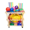 ÚLTIMAS UNIDADESCarro de madera con set de implementos para construir circuitos de motricidad que incluye: 4 aros plásticos de colores de 50 cm, 4 aros plásticos de colores de 60 cm, 2 set de 6 cintas rítmicas de colores en 6 colores, medidas 23 x 180 cm, 1 circuito de equilibrio de anillos, compuesto por 11 aros de 50 cm diámetro, en 3 colores: 4 amarillos, 4 rojos y 3 azules, 1 set de 8 flechas de material goma antideslizante, en diferentes colores, 12 conectores plásticos de ula ula, barras y aros, 8 conos plásticos de colores de 30 cm para conectar, 8 cuerdas de salto con mango de madera de 2.5 m, 1 set de 12 huellas de pies, material goma resistente, 1 set de 12 huellas de manos, material goma resistente, 2 pelotas de reacción grande de 11 cm, 4 pelotas de goma sensorial de 30 cm, 4 pelotas sensoriales de diferentes colores de 18 cm, 2 set de 6 banderas rítmicas con peso de 50 x 50 cm, 8 tubos plásticos de 100 cm, 8 tubos plásticos de colores de 70 cm y 2 pares de zancos de plástico antideslizante de 12 x 13 cm. Estos materiales son ideales para potenciar las habilidades psicomotoras y fomentar la vida sana.