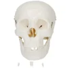 ÚLTIMAS UNIDADESModelo de cráneo adulto de tamaño natural presenta una mandíbula movible, corte de bóveda craneal, líneas de sutura y 3 dientes inferiores extraíbles: incisivos, cuspídeos y molares con medidas 19 x 15 x 21 cm. Presentación en caja de cartón medidas 18 x 18 x17 cm.