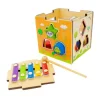 ÚLTIMAS UNIDADESCubo de madera encaje con xilófono que Incluye 12 piezas de madera pintadas con diferentes figuras geometricas encajables con medidas entre 6,5 cm a 3 cm , 1 baqueta de madera y bolsa de genero para guadar. Desarrolla motricidad, atención , concentración y relación causa-efecto. Presentación caja de cartón medidas 14,5 x 15 x 15 cm.