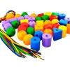 Set compuesto por 48 piezas, de diferentes colores, material plástico resistente. Las piezas miden 3,6 cm x 4,2cm. Las piezas incluyen figuras tales como: cubos, cilindros y esferas. Diseñado para actividades de enhebrar, desarrollando habilidades motoras, secuencias, reconocimientos de forma y concentración.