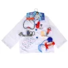 ÚLTIMAS UNIDADESDisfraz de médico compuesto por delantal tamaño estándar fabricado en material taslan, liviano y confortable, blanco con bolsillos, una mascarilla de género y accesorios plásticos (estetoscopio, tomador de presión, tijera, jeringa, termómetro y medidor de reflejos). Fortalece la imaginación y lenguaje oral.