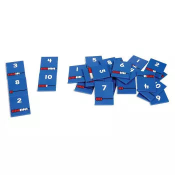 Dominó de Rekenrek compuesto por 30 piezas, material plástico resistente, color azul con gráfico de diseño ábaco, con medidas 2,5 x 5 cm.