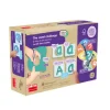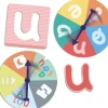 Juego EL Reto de las Vocales Texturadas. Set contiene 20 cartas de las vocales con distintas texturas y cortes medidas 8.9 x 8,9 cm. 2 discos para ruleta de 12 cm. de diámetro, 5 vocales perforados de 12 x 13 cm. Todos fabricados en cartón duro. Además de 5 cordones de colores y 2 flechas de plástico para la ruleta. Presentación en caja de cartón medidas 20 x 6,5 x 13 cm.