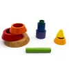 ÚLTIMAS UNIDADESJuego apilable pirámide, material madera, compuesto por 9 piezas cilíndricas de diferentes tamaños y colores. Las piezas miden entre 4,5 x 4,5 cm (la más pequeña) a 14,5 x 3 cm (la más grande). Desarrolla la motricidad fina, atención y clasificación.