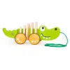 ÚLTIMAS UNIDADESJuego de arrastre cocodrilo de madera al natural y pintado en llamativos colores no tóxico, de 11X 28 X11 cms. Y cordel de 60 cms. con terminación en pelota de madera, cuando el bebé tira de la cuerda, mueve el cocodrilo y esta mueve su cola, cabeza y cuerpo que está diseñado con elasticos para mejor flexibilidad. Desarrolla motricidad y coordinación viso espacial.