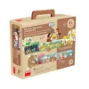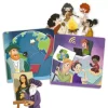 Juego de asociación, Historia de la Humanidad. Contiene 30 piezas cuadradas de 9 x 9 cm. , una línea de tiempo encajable de 5 piezas y 5 pentágonos de 18 x 15,5 cm. Todos fabricadas en cartón duro con ilustraciones. Presentación en caja de cartón con mango medidas 24,5 x 7 x 13,5 cm.