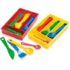 ÚLTIMAS UNIDADESJuego de Cuchillería compuesto por 17 piezas de material plástico resistente en llamativos colores.Incluye una bandeja para poner los cubiertos, 4 cucharas de 13,5 x 3 cm, 4 tenedores de 13,5 x 2 cm , 4 cuchillos sin filo de 13,5 x 2 y 4 cucharitas de té de 4 x 1,5 cm. Desarrolla lconvivencia escolar, trabajo colectivo, habilidades sociales y juego de roles. Presentación bolsa plástica.
