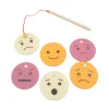 ÚLTIMAS UNIDADESJuego de pesca de las emociones 18 piezas en madera que incluye 4 cañas de pescar de madera con imán com medidas 15,5 cm y con hilo miden 33 cm, 18 caritas de emociones con imán, medidas 7 cm de diámetro en 3 colores diferentes y 6 emociones distintas como: feliz, triste, enojado, asustado, apenado, frustrado. Desarrolla lenguaje y reconocimiento de emociones. Presentación caja de cartón con medidas 15,5 x 7,5 x 4,5 cm.