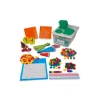 Kit de matemáticas, material resistente, diferentes colores, compuesto por 1 juego de gusanitos para clasificación, 100 fichas de color, cubos de 2 x 2 cm diferentes colores, 200 Base 10, 100 barras base 10, 150 fichas de dos colores, 2 juegos de fichas de monedas, 2 regletas, 10 tableros, 2 mini relojes con engranajes, 2 geoplanos con elásticos y 1 juego de barras cuisenaire.