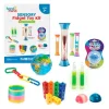 ÚLTIMAS UNIDADESKit sensorial, compuesto por 8 juegos: Incluye 1 tubo sensorial, 2 varillas brillantes, 1 playfoam, 100 cadenas para conectar, 2 botones de presión de colores, una pelota antiestrés con diseño del mundo, 20 cubos conectables y 1 resorte plástico de color arcoíris. Material diseñado para calmar a los niños y niñas sin necesidad de usar las pantallas, desarrolla habilidades socio emocionales, control de ansiedad y del estrés. Presentación caja de cartón medidas 30 x 10 x 30 cm.