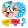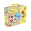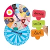 Juego Ruleta de la Autoestima. Contiene 3 ruletas de 18 cm. de diámetro con fotografías. 24 mini pizarras de 10 x8 cm., 24 discos de 3 cm. de diámetro con números . Todas fabricadas en cartón duro con ilustraciones y fotografías. Además set contiene 12 plumones con borrador. Presentación en caja de cartón con mango medidas 24,5 x 7 x 13,5 cm.