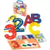Set de actividades para enhebrar letras y números, compuesto por 27 letras y 10 números de material plástico, 20 tarjetas de actividades y 10 cuerdas de hilo. Promueve la estimulación temprana y el desarrollo de habilidades motoras. Empaque en caja de cartón de 23,5 x 24 x 6,5 cm.