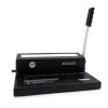 ÚLTIMAS UNIDADESMaquina espiralera negra, para papeles tamaño carta, medidas 37,5 x 10,5 x 25,5 cm. Presentación caja de cartón medidas 44 x 31 x 18,5 cm