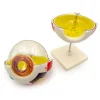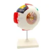 Modelo anatómico del ojo humano esta diseccionado en 2 partes, mostrando así las diferentes partes del ojo como la esclerótica, córnea, músculos oculares, coroides, iris y retina. Medidas ojo 16 x16 cm. Incluye una base con medidas16 x 16 cm. Altura total 24 cm. Presentación en caja de cartón medidas 18 x 15,5 x 17,5 cm.