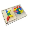 ÚLTIMAS UNIDADESMosaico compuesto por 60 piezas de madera natural pintada con medidas entre 4 x 4 cm y 6,5 x 3 cm, 8 patrones de madera natural pintada con medidas 18 x 15 cm y una caja de almacenamiento con tapa acrílica, madera natural, con medidas 33 x 22 x 4,5 cm. Desarrolla conceptos básicos matemáticos, simetría, coordinación visual, concepto de superficie y representación espacial. Presentación en caja de cartón con medidas 34,5 x 23 x 5,5 cm.