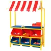 Mueble puesto mercado de 158 piezas. Ideal para actividades recreativas, aprendizaje cognitivo y conceptos matemáticos. Desarrolla la comunicación social, juego de roles, imaginación y lenguaje oral fortaleciendo la exploración, investigación y experimentación.