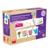 Set compuesto por 54 láminas con fotografías reales con medidas 17 x 12 cm y 1 soporte para láminas. Desarrolla memoria, atención, vocabulario y fluidez verbal.