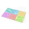 Piso de goma soft compuesto de 6 piezas conectables con diferentes texturas. Cada pieza mide 30 x 30 cm. Presentación en caja de cartón medidas 30,5 x 18 x30.5 cm.