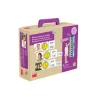 ÚLTIMAS UNIDADESPanel de tela con bolsillos de plástico con medidas 105 x 35 cm, 36 fichas con imágenes, medidas 9 x 9 cm, 36 fichas con reloj, medidas 9 x 9 cm, 72 fichas con horas, medidas 9 x 5 cm y 12 fichas am/pm, medidas 9 x 9 cm. Diseñado para planificar las actividades que se hacen a lo largo del día. Fortalece la autonomía, gestión de tiempo, percepción temporal y estructura cronológica.