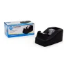 Porta scotch de color negro, medidas 10,4 x 5,8 x 4,3 cm. Diseñado como dispensador de cinta scotch. Presentación caja de cartón, medidas 10,5 x 6,5 x 4,5 cm.