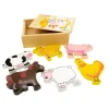 ÚLTIMAS UNIDADESPuzzle de 6 animales de la granja magnético de madera, cada uno mide 12×9 cm. Cada puzzle contiene 3 piezas. Material que desarrolla motricidad fina, coordinación visomanual y concentración. Presentación caja de madera.