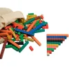 ÚLTIMAS UNIDADESSet regletas cuisenaire compuesto por 126 piezas en material biodegradable, diferentes colores, con medidas entre 1 cm la pieza más pequeña y 10 cm la más grande. Incluye bolsa de tela. Permite trabajar el conteo, secuencia, medidas y operaciones matemáticas básicas.