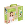 ÚLTIMAS UNIDADESJuego SEPARAR Y RECICLAR compuesto de 5 mini contenedores de plástico en diferentes colores, 35 fichas cuadradas de 6,1×6,1 cms. de cartón resistente con fotografías de distintos residuos domésticos, 1 hoja con pegatinas con los símbolos de cada tipo de residuos, 1 dado de 3,5 cms. y guía pedagógica con actividades. Desarrolla las habilidades de asociación, clasificación, relacionar, sensibilizar respecto a los residuos domésticos, conocimiento acerca de ellos y enseñar a tener conciencia del cuidado del medio ambiente.