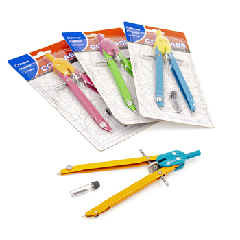 pack de 12 Compas escolar metálico universal de alta precisión metálico con minas de repuesto. Medidas 16,5 x 6 cm. Presentación blister.