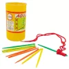 Aguja ergonómica diseñada para las manos infantiles. Es ideal por su tamaño. Es flexible y su punta roma no supone ningún peligro. De fácil enhebrado. Muy útil para la realización de ejercicios de psicomotricidad fina. Contiene 100 agujas de colores con medidas 11, 7 mm. Un cordón de largo 100 mm. Presentación en pote de plástico medidas 135 x 76 mm. de diámetro.