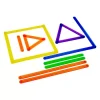 Set compuesto por 24 piezas, material plástico resistente, en barritas de diferentes colores y tamaños. Diseñadas para ser conectadas entre sí formando figuras geométricas en plano.