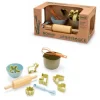 ÚLTIMAS UNIDADESContiene 11 piezas, 1 recipiente, 1 batidor manual, 1 uslero, 1 cortador de masa, 1 fuente y 6 moldes, de medidas entre 25 cm y 10 cm. Permite desarrollar habilidades de juego de roles, además de promover habilidades sociales y visomotoras. Material bioplástico certificado.