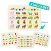 ÚLTIMAS UNIDADESSet de lógica 2, material madera natural, compuesto por 4 bandejas de madera con medidas 30 x 22,5 cm y 100 fichas de madera (25 por cada bandeja).
