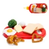ÚLTIMAS UNIDADESContiene 10 piezas, 1 tabla, 2 medias lunas, 2 rebanadas de pan, 1 queso, 1 huevo frito y 1 duro, 1 pretzel y 1 pimentón, de medidas entre 27 cm y 12 cm. Desarrolla habilidades de juego de roles en relación a los diferentes tipos de alimentos , además de desarrollar habilidades sociales. Es de material plástico reciclable.