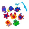set de pesca compuesto por 11 piezas de difrentes formas, colores y tamaños: pez, pulpo, estrella de mar, caballito de mar, cangrejo, rana y tortuga y una caña de pescar, material goma eva no tóxico medidas entre 5cm y 9cm. Idel para desarrollar la motricidad fina y estimular la concentración.