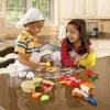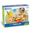 Set compuesto por 31 piezas distribuidas en 1 bol para mezclar, 1 cuchara para mezclar, masa de galletas, 4 galletas de distintas, 1 corta pastas, 1 huevo dividido en 3 partes, 1 rodillo, 1 bandeja, 3 rebanadas de pan, 1 cuchillo, 6 trozos de torta, rodaja de manzana, rodaja de durazno, una frutilla dividida en 2 partes, 1 espátula, 1 taza graduada y 2 cucharas graduadas, material plástico resistente. Desarrolla habilidades sociales, imaginación, trabajo en equipo y juego de roles.
