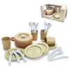 Set de vajilla ecológico compuesto por 22 piezas fabricadas en caña de azúcar, una planta sostenible que reduce las emisiones de carbono, son piezas 100% reciclables, seguras para el contacto con alimentos, microondas y lavaplatos. Incluye: 4 platos, 4 cuchillos, 4 cucharas, 4 tenedores, 4 tazas, 1 sartén y 1 tapa. Desarrolla la convivencia escolar, el trabajo colectivo, habilidades sociales, y el juego de roles.