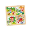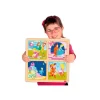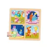 Set de 8 puzzles de madera, distribuidos en 2 cuentos clásicos. Cada cuento se sitúa sobre un soporte de madera que incluye 4 puzzles con divertidas ilustraciones que narran el cuento a modo de secuencias temporales. Cada uno de los 8 puzzles de madera está formado por 4 piezas. Dirigido a niños a partir de 2 años. Cada pieza mide 6,4 x 6,4 cms aproximadamente.