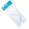 Set de reglas geométricas 4 piezas. Contiene regla de 20 cm., 2 escuadras y un trasportador. Presentación en bolsa de plástico transparente.