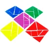 ÚLTIMAS UNIDADESPote con 5 sets de tangramas, de diferentes colores, material plástico resistente. Este set contiene 35 piezas de colores del mismo grosor. Cada tangrama está compuesto por 7 piezas. Las piezas son: dos triángulos grandes, un triángulo mediano, dos pequeños, un cuadrado y un romboide. Ayuda al aprendizaje de conceptos geométricos, resolución de problemas, estimulación de atención y concentración. Cada tangrama armado mide 10 x 10 cm. Este mismo producto se encuentra disponible en dos códigos: JUEGPLO032 y JUEGUSL018.