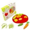 Juego de encaje con vegetales. Set contiene 10 piezas. con vegetales encajables de distintos tamaños. Medida total 24 x 2 x21 cm. Todos fabricados en goma blanda y con textura exterior soft aterciopelada. Presentación en caja de cartón medidas 31,2 x3 x21 cm.