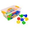 Caja de plástico que contiene 64 piezas distribuidas en: 32 tuercas de 4,5×4,5 cms. y 32 tornillos de 4,5×6 cms. en plástico rígido resistente, de distintos colores. Fortalece la imaginación y creatividad, desarrollando las habilidades de clasificación, seriación, atención y coordinación motriz. Presentación en caja de plástico transparente medidas 28,5 x 20 x 11,5 cm.
